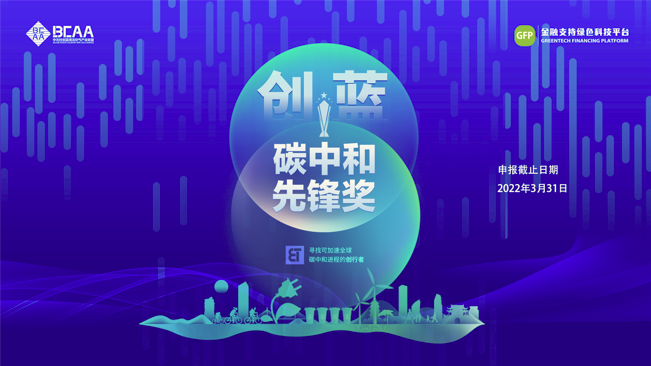 2022年1月27日,由中關村創藍清潔空氣產業聯盟與金融支持綠色科技平臺共同發起的首屆“創藍碳中和先鋒獎”評選在北京正式啟動。該獎項將在全球范圍評選碳中和領域的科技先鋒企業,以期達到支持和加速優秀綠色科技企業和團隊,助力中國和全球碳中和進程的目的。即日起至2022年3月31日,綠色低碳領域的科技企業與創業團隊可以參與獎項的申報。經過初篩、內部評審、路演與專家評審等環節,主辦單位將于2022年6月在北京舉辦的“2022金融支持綠色科技年會”上舉行頒獎典禮。