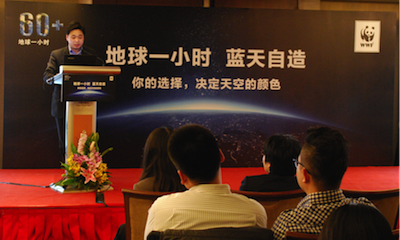 中國清潔空氣聯盟聯合能源基金會,與WWF共同發起的主題為“藍天自造”的2014地球一小時活動于2014年3月4日下午在北京中國大飯店舉行了新聞發布會。