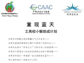 ??2015年5月,由能源基金會、中國清潔空氣聯(lián)盟、北京地球村環(huán)境教育中心聯(lián)合發(fā)起的針對北京高校大學(xué)生社團(tuán)、團(tuán)體及個人的“重現(xiàn)藍(lán)天之高校小額助成計劃”正式發(fā)布,該計劃通過資助高校社團(tuán)、團(tuán)體及個人減霾公益活動,征集減少空氣污染方案、行動、創(chuàng)意,激勵在校大學(xué)生展開積極行動,深入到高校......